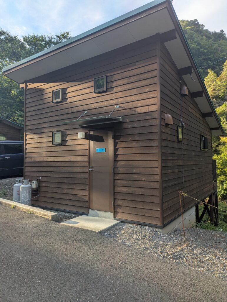 はこだたみキャンプ場はバンガローが2タイプあって少し古いバンガローA棟と最近建て替えられて新しいバンガローB棟があり、今回はバンガローB棟に宿泊することにしました。